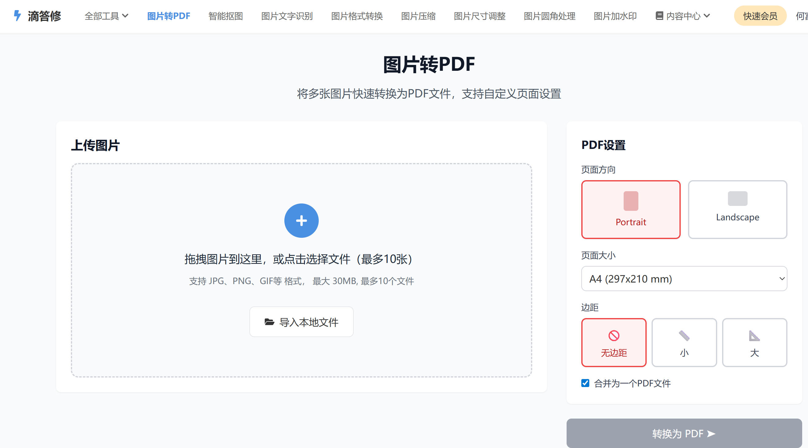 **Q: 最多可以一次转换多少张图片,多张图片怎么转换成pdf格式?** A: 目前限制为一次最多10张图片,以确保处理速度和稳定性。